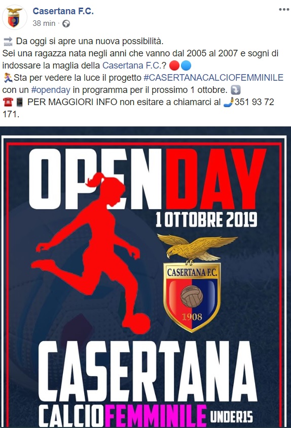 Questo quanto pubblicato sulla pagina Facebook della Casertana: