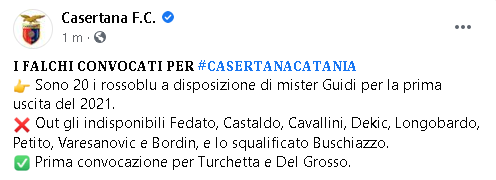 Lo apprendiamo dalla pagina Facebook Casertana F.C.