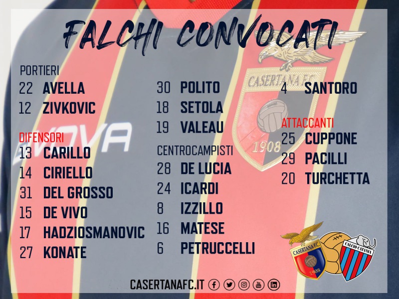 CASERTANA-CATANIA. ECCO I FALCHI CONVOCATI