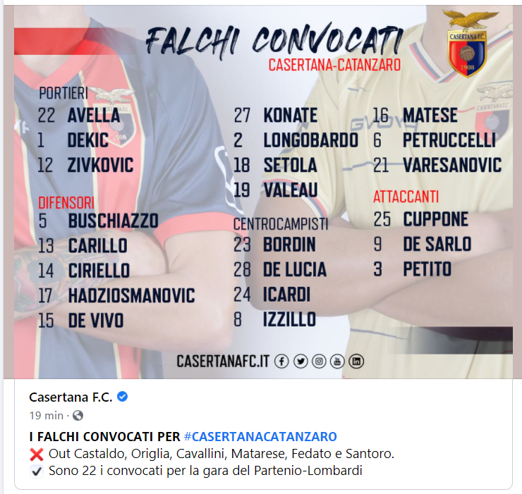 Questo quanto pubblicato sulla pagina FB della Caserta FC
