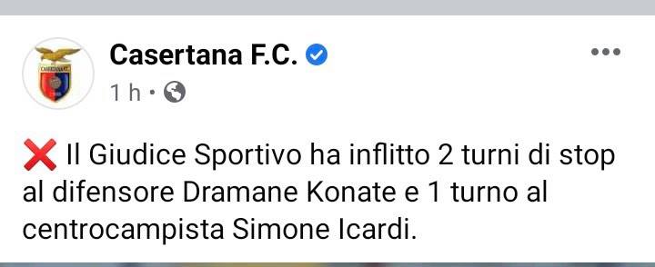 Questo quanto pubblicato sulla pagina fb della Casertana
