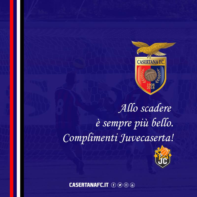 "Le risalite passano attraverso tappe importanti e significative. Complimenti Sporting Club Juvecaserta. ...certe emozioni le conosciamo bene"