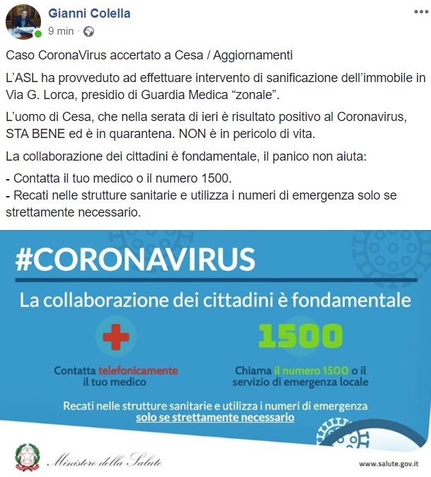 Questo quanto appreso dal Sindaco di Succivo Colella: