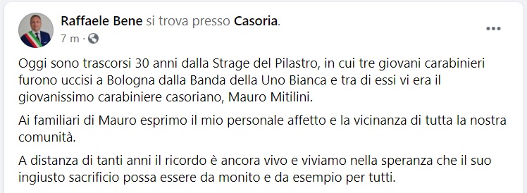 Questo quanto pubblicato sulla pagina fb del Sindaco di Casoria
