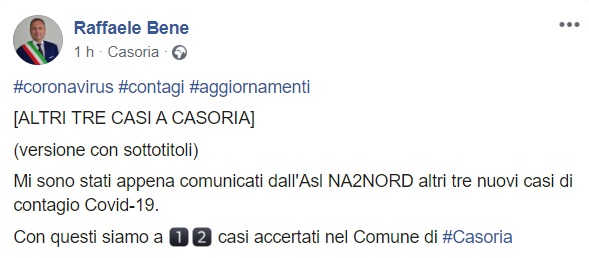 Questo quanto pubblicato sulla pagina facebook del Sindaco Bene: