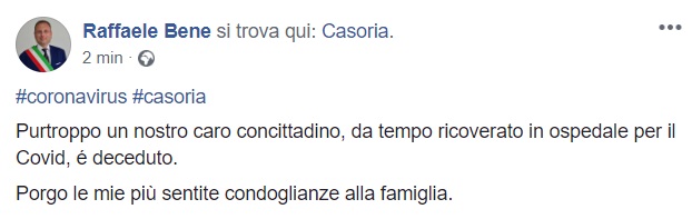 Questo quanto pubblicato sulla pagina facebook del Sindaco Bene:
