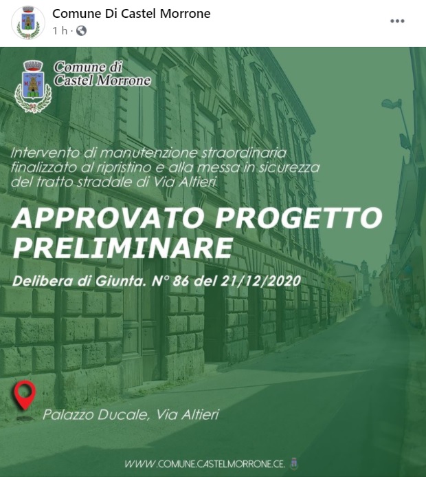 Questo quanto pubblicato sulla pagina facebook del Comune di Castel Morrone: