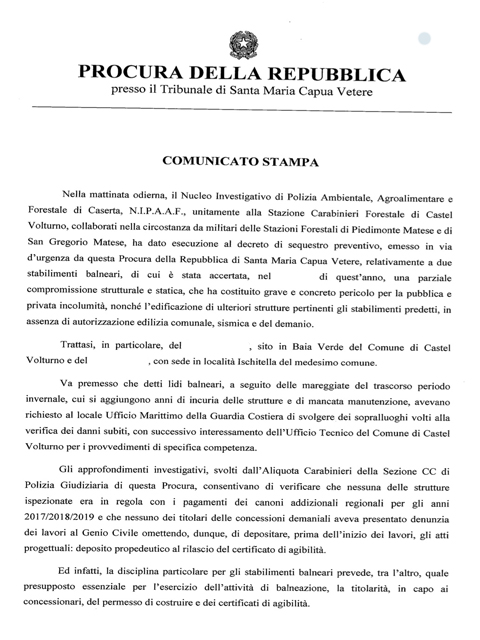 Questo parte del testo della nota della Procura della Repubblica presso il Tribunale di SMCV: