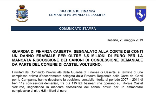 Questo il comunicato inviatoci dal Comando Provinciale della Guardia di Finanza di Caserta.