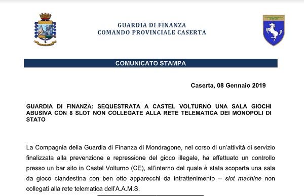 Questo il comunicato inviatoci dal Comando Provinciale della Guardia di Finanza di Caserta.