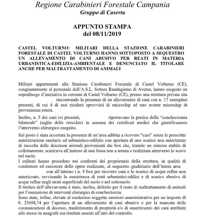 Questa la nota stampa del Comando Provinciale Carabinieri di Caserta: