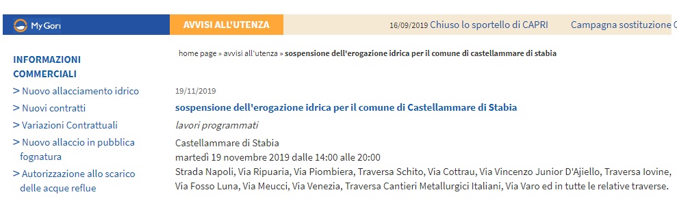 Strada Napoli, Via Ripuaria, Via Piombiera, Traversa Schito, Via Cottrau, Via Vincenzo Junior D'Ajiello, Traversa Iovine, Via Fosso Luna, Via Meucci, Via Venezia, Traversa Cantieri Metallurgici Italiani, Via Varo ed in tutte le relative traverse".