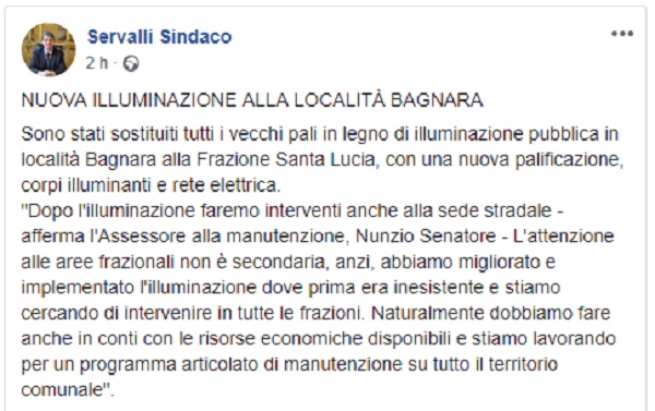 Questo il post pubblicato sulla pagina fb ufficiale del Sindaco di Cava de' Tirreni Servalli.