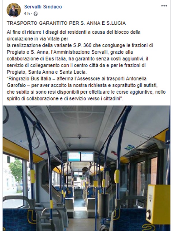 Questo il post pubblicato sulla pagina fb ufficiale del Sindaco di Cava de' Tirreni Servalli.
