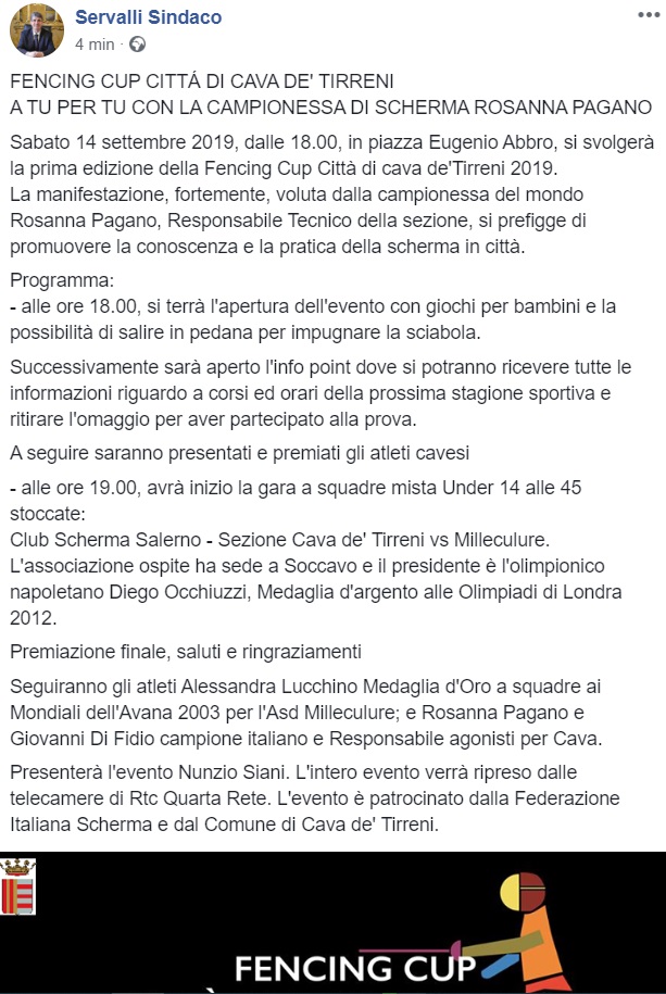Questo quanto pubblicato dal Sindaco di Cava de' Tirreni, Vincenzo Servalli: