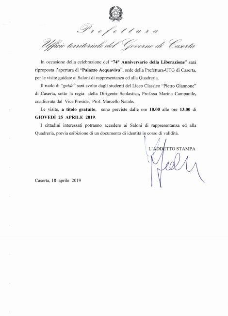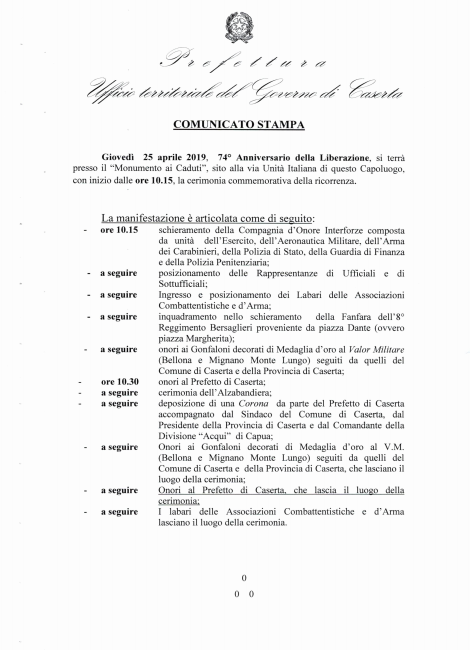 Di seguito, il testo del comunicato della Prefettura di Caserta, giunto in redazione: