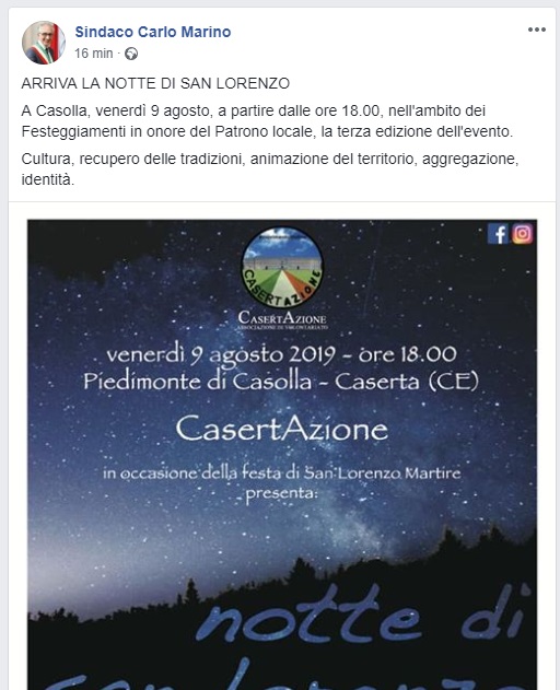 Questo quanto apprendiamo dal profilo FB del Sindaco Carlo Marino