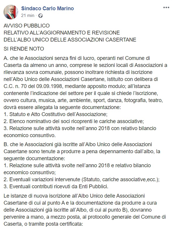 Questo quanto pubblicato su facebook dal Sindaco Marino:
