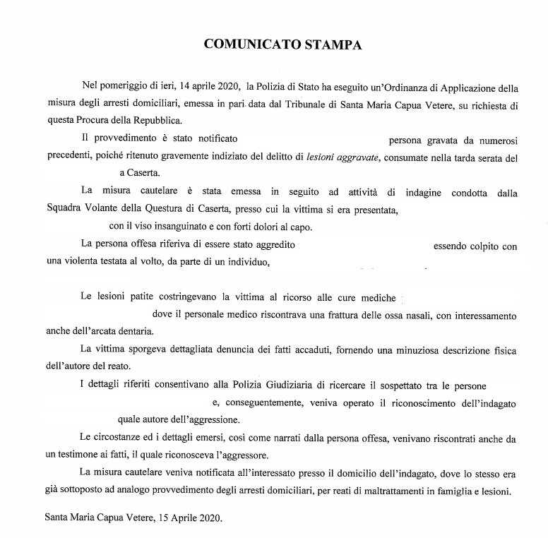 Questo parte della nota della Procura della Repubblica presso il Tribunale di SMCV: