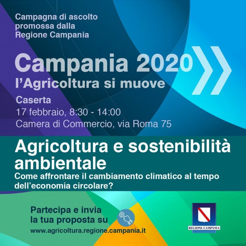 Domani, lunedì 17 febbraio, presso la Camera di Commercio di Caserta, ci sarà l'appuntamento 'Agricoltura e sostenibilità ambientale' dalle ore 8:30 alle 14. Evento, questo, promosso dalla Regione Campania.