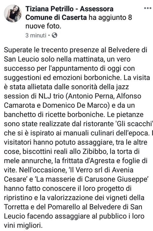Questo quanto pubblicato su Facebook dall'ass. di Caserta, Tiziana Petrillo: