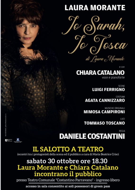“Il Salotto a Teatro” riparte! Sabato 30 ottobre alle ore 18,30 al Teatro Comunale di Caserta il primo appuntamento del ciclo di incontri tra i protagonisti della scena e il pubblico. Ospiti de “Il Salotto a Teatro”, curato dalla giornalista Maria Beatrice Crisci, saranno Laura Morante e Chiara Catalano. Le due raffinate attrici - si legge nella nota - saranno in scena da venerdì 29 ottobre a domenica 31 ottobre al Comunale Costantino Parravano con lo spettacolo «Io Sarah, io Tosca» di Laura Morante. La regia è di Daniele Costantini. L'evento potrà essere seguito anche sulla pagina facebook de Il Salotto a Teatro. L'incontro è libero con accesso in sala consentito ai soli possessori di green pass come tutti gli altri eventi del ciclo. E di veri e propri eventi si tratta, visto che, di volta in volta, si potrà interloquire con gli attori, a volte anche con altre figure coinvolte nella realizzazione delle proposte sceniche, fare domande e scoprire le possibili chiavi di lettura di ogni singolo spettacolo della stagione. “Il Salotto a Teatro”, incontri tra i protagonisti della scena e il pubblico, nasce con lo scopo di contribuire a superare la barriera tra palcoscenico e platea, mettendo in diretto rapporto registi, attori, autori con gli spettatori e con tutti quanti amino il mondo teatrale. Conoscendo la trama dello spettacolo - si legge nella nota -, la sua genesi culturale, le caratteristiche della regia, l’interiore approccio interpretativo degli attori, il pubblico potrà ancora meglio apprezzare la rappresentazione e scorgere cosa ci sia sotto la maschera di scena. Si tratta sicuramente di una bella opportunità artistica e culturale che permette al pubblico di conoscere da vicino gli artisti in scena al Teatro comunale Costantino Parravano."