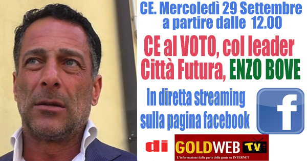 Non perdete domani, mercoledì 29 Settembre 2021, a partire dalle ore 12 sulla pagina facebook di goldwebtv.it, l'incontro in diretta con il leader del Movimento Città Futura Enzo Bove. Con l'ex consigliere comunale parleremo degli ultimi giorni di campagna elettorale che vede il movimento di 'Terra di Lavoro' al fianco di Pio Del Gaudio candidato Sindaco.