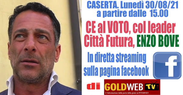 A distanza di due giorni dall'ultimo appuntamento, torna questo pomeriggio la trasmissione 'CE al Voto'. A partire dalle ore 15 in diretta streaming sulla nostra pagina facebook 'gold webtv' avremo ospite il patron del Movimento Città Futura Enzo Bove. Con lui parleremo dei programmi della lista che appoggia Pio Del Gaudio e degli ultimi fatti che si sono verificati a Caserta città. Vi aspettiamo