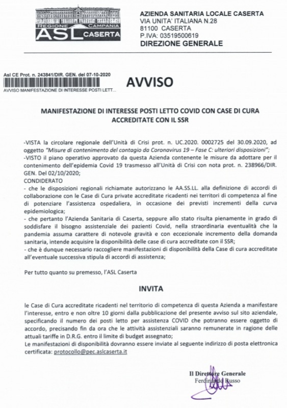 (Ruota il telefono per leggere l'avviso dell'Asl di Caserta)
