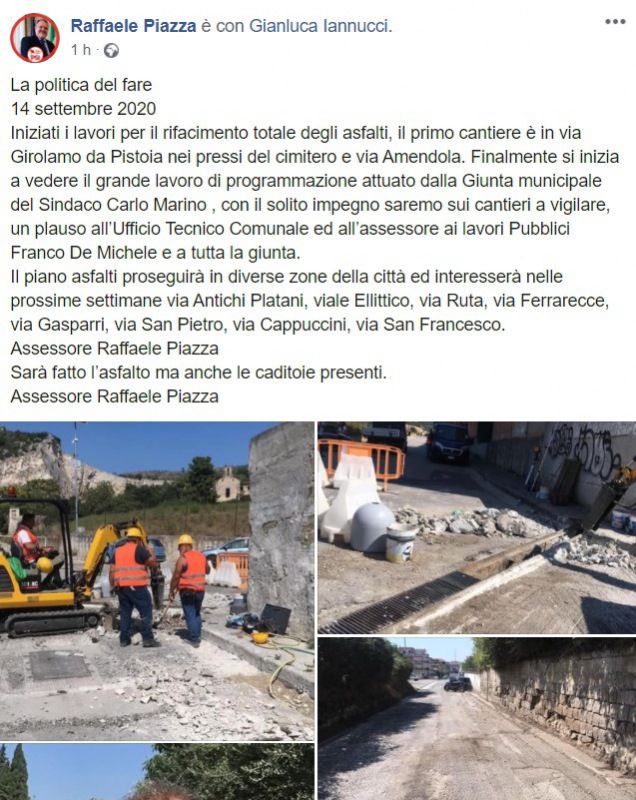 Questo quanto pubblicato sulla pagina facebook dell'ass. Piazza: