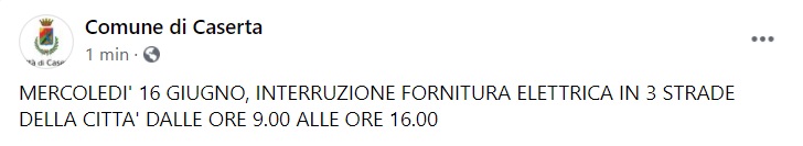 Questo quanto pubblicato sulla pagina facebook del Comune di Caserta: