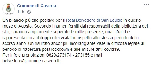 Questo quanto pubblicato sulla pagina facebook del Comune di Caserta: