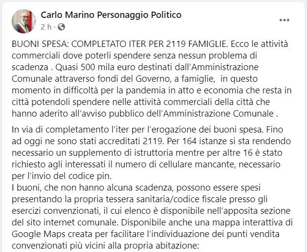 Questo quanto pubblicato sulla pagina fb del Sindaco Marino