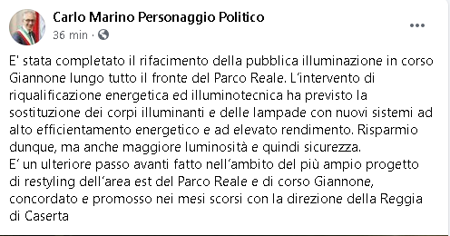 Lo apprendiamo dalla pagina Facebook di Carlo Marino, Sindaco di Caserta.