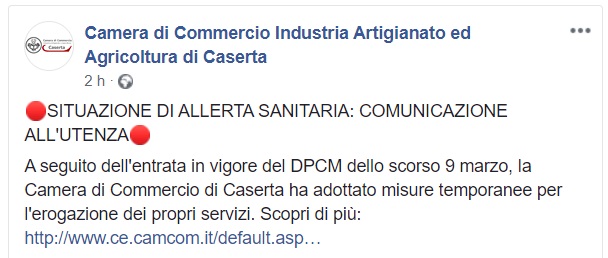 Questo quanto pubblicato dalla Camera di Commercio. Scopri di più QUI