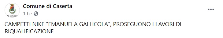 Questo quanto pubblicato sulla pagina facebook del Comune di Caserta: