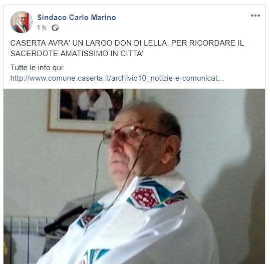 Riceviamo e pubblichiamo comunicato stampa del Comune di Caserta: "Caserta avrà un Largo intitolato a Don Innocenzo Di Lella, indimenticata figura di sacerdote amatissimo in città. Lo ha deciso la giunta comunale nel corso della sua ultima riunione. A Don Di Lella sarà intitolata l'area di fronte alla Chiesa del Buon Pastore, all'intersezione tra viale Raffaello, via G.M. Bosco, viale Cappiello e piazza Pitesti. Proprio del Buon Pastore Don Di Lella, scomparso poco meno di un anno fa, fu parroco dal 1973 e l'Amministrazione comunale ha scelto quest'area a ridosso della Chiesa ove il sacerdote visse parte del suo ministero. Laureato in Scienze Naturali - continua la nota -, Don Di Lella fu ordinato sacerdote a 26 anni e fu Salesiano nella Comunità di Caserta per 17 anni. In seguito, fu per 22 anni Penitenziere Maggiore, cioè investito della facoltà di confessare ed assolvere nei casi riservati. Ma Don Di Lella fu soprattutto - come hanno ricordato migliaia di persone nella richiesta di intitolazione - un sacerdote che parlava al cuore delle persone, non sempre compreso dalle gerarchie pur se amatissimo dai giovani e dai cittadini dei rioni popolari della città. Nell'anniversario - continua la nota - della sua scomparsa, la figura di Don Di Lella verrà ricordata lunedì prossimo 25 febbraio, alle ore 18.00, nel corso di una Santa Messa celebrata dal vescovo emerito monsignor Raffaele Nogaro."
