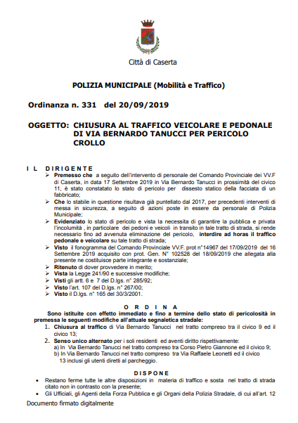 Lo apprendiamo dall'Albo pretorio del Comune di Caserta.
