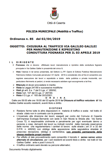 Lo apprendiamo dall'albo pretorio del Comune di Caserta.