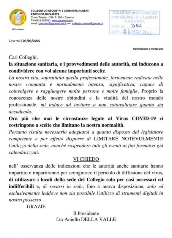 Questo il documento del Collegio dei Geometri e Geometri Laureati della Provincia di Caserta