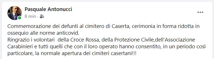 Questo quanto pubblicato sul profilo facebook del Cons. Com. di Caserta Pasquale Antonucci
