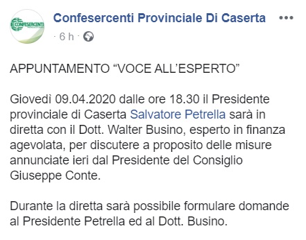 Questo quanto pubblicato da Confesercenti Caserta