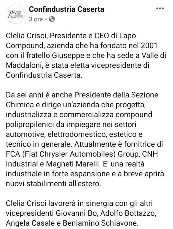 Questo quanto pubblicato da Confindustria Caserta