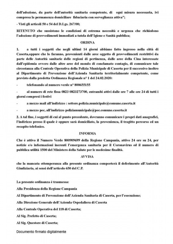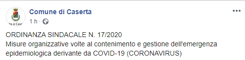 Lo apprendiamo dalla pagina Facebook del Comune di Caserta: