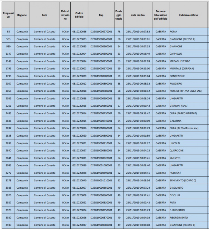 Anche Caserta rientra nel Piano Straordinario di prevenzione dei crolli di solai e controsoffitti nelle scuole, attivato dal Ministero dell’Istruzione, dell’Università e della Ricerca. Son ben 27 i plessi scolastici cittadini, di proprietà comunale, che saranno oggetto di verifiche straordinarie. I finanziamenti, per circa 200mila euro totali, sono stati ottenuti dal Comune di Caserta grazie alla partecipazione-spiega la nota- nei mesi scorsi al bando del MIUR che ha reso disponibili risorse per oltre 65 milioni di euro per i controlli. Con i fondi ottenuti, il Comune avvierà verifiche specifiche su solai e controsoffitti delle scuole comunali che consentiranno di avere un quadro completo della situazione. -spiega la nota-Ove saranno rilevate specifiche criticità ci sarà la possibilità di accedere ad ulteriori finanziamenti (in totale 25 milioni e 900 mila euro) che il Ministero ha stanziato per “interventi urgenti che si dovessero rendere necessari a seguito delle verifiche”. “Abbiamo immediatamente partecipato al bando del Ministero per il valore dell’iniziativa – ha spiegato l’assessore all’Edilizia Scolastica Alessandro Pontillo - che-spiega la nota- sta nella qualità tecnica dei controlli previsti e nella visione, focalizzata su un presente e futuro di sicurezza per i nostri bambini e ragazzi. La verifica degli edifici scolastici, in questo caso a partire dai solai e dai controsoffitti, è una operazione necessaria per le nostre scuole. -spiega la nota-Un controllo straordinario a tappeto consentirà di rilevare eventuali criticità prima che il danno sia più evidente e pericoloso. L’obiettivo prioritario – ha concluso Pontillo - non è intervenire dopo una infiltrazione o una caduta di una porzione di intonaco, ma evitare, con la prevenzione, che ciò avvenga”.