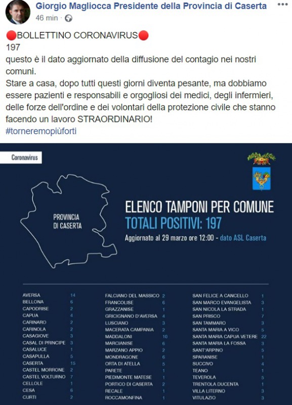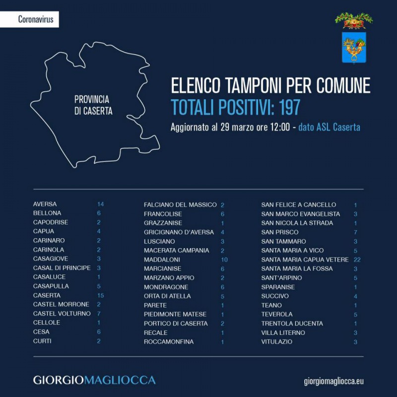CE. Coronavirus. I dati Comune per Comune dei contagi nella Provincia
