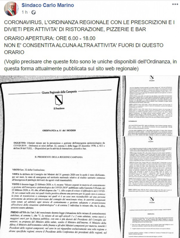 Questo quanto pubblicato sulla pagina facebook del Sindaco Marino: