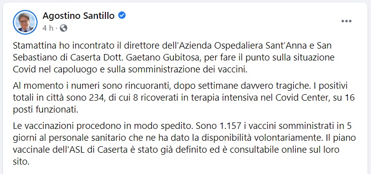 Questo quanto pubblicato sulla pagina fb del Sen. Santillo