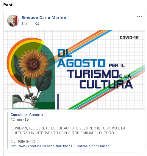 Lo apprendiamo dalla pagina Facebook del Comune di Caserta: