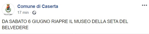 Questo quanto apprendiamo dalla pagina facebook del Comune di Caserta:
